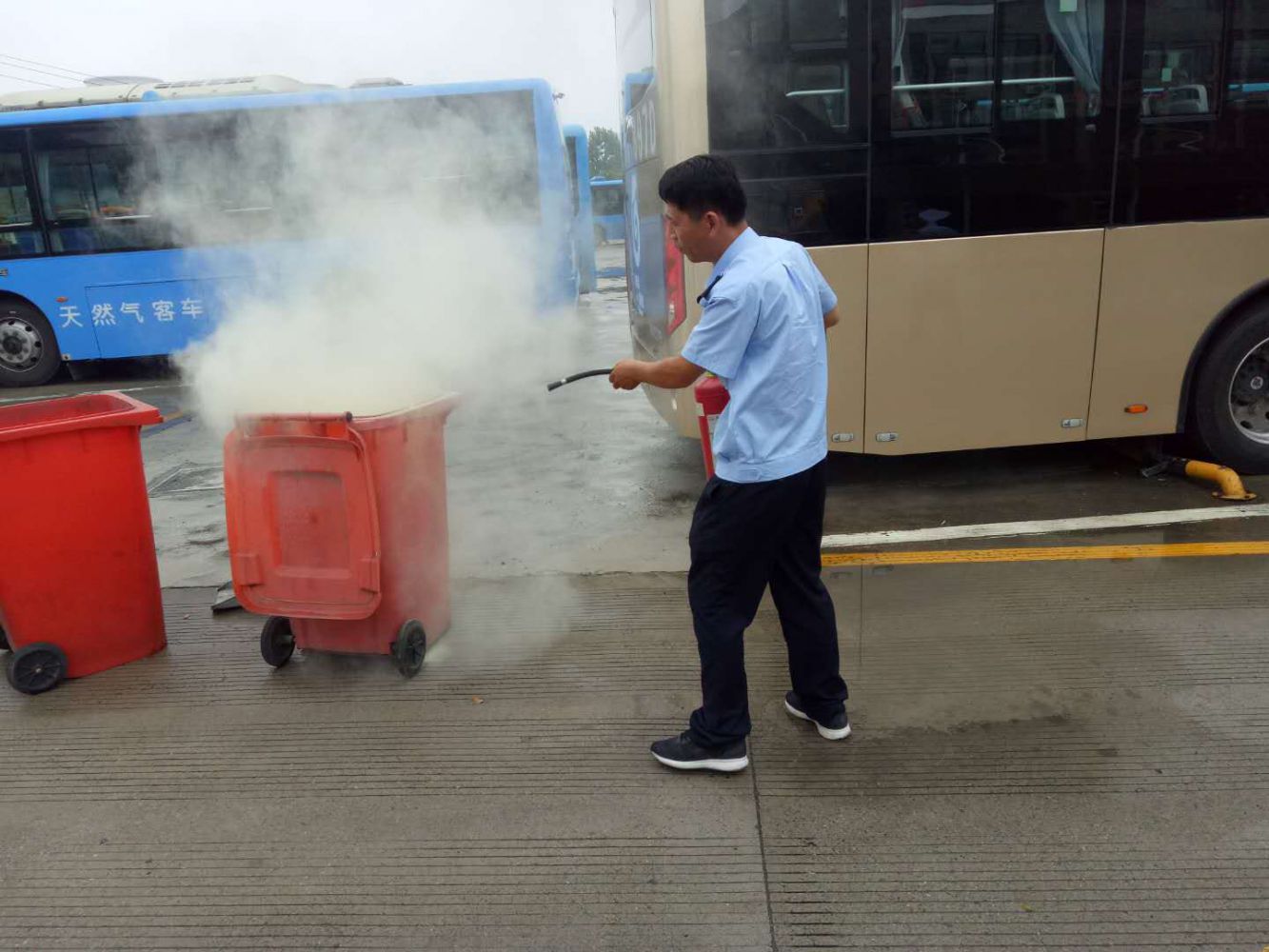 盛夏漸漸來臨,隨著氣溫的持續(xù)攀升,消防安全事故發(fā)生的幾率也不斷加大,為公交運營安全帶來嚴(yán)峻的考驗。為進(jìn)一步消除火災(zāi)隱患,增強(qiáng)一線員工的消防安全意識,提高防范自救的能力,有效避免各類突發(fā)消防安全事故,保障群眾人身財產(chǎn)安全,近日,蕭山公交五車隊聯(lián)合安保部組織開展消防安全培訓(xùn)演練。