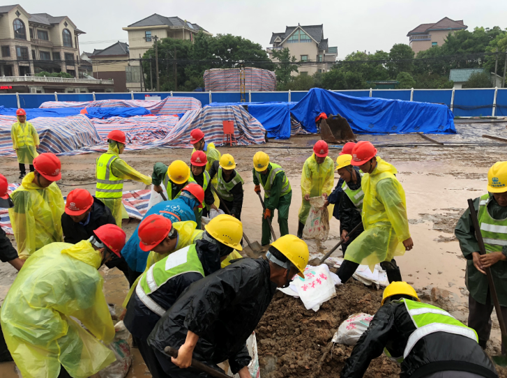 此次演練共設(shè)置防汛應(yīng)急隊(duì)伍集結(jié)出動(dòng)、現(xiàn)場(chǎng)基坑積水排除、沙袋運(yùn)送制作擋水壩、疏散被困群眾四項(xiàng)內(nèi)容。演練模擬了蕭山區(qū)突降大到暴雨,水勢(shì)較大施工現(xiàn)場(chǎng)低洼地帶道路、基坑雨水堵塞,施工現(xiàn)場(chǎng)周圍發(fā)現(xiàn)被困群眾。