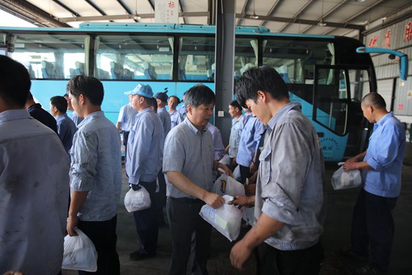 修理車間內(nèi),修理工師傅們滿頭是汗地?fù)屝薨l(fā)生故障的車輛,衣服全都濕透了,手上、臉上沾滿了油污。虞書記將慰問(wèn)品一一送到他們手中,感謝他們付出的辛勤汗水,并再三叮囑大家要注意身體調(diào)節(jié),謹(jǐn)防中暑,同時(shí)要求公司做好防暑降溫和安全生產(chǎn)工作。