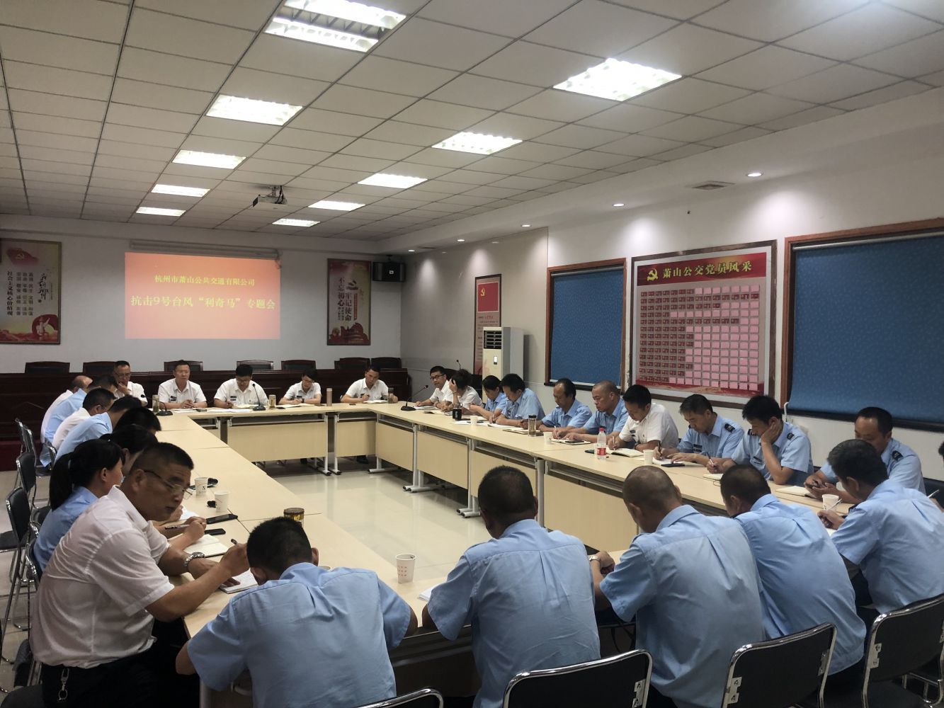 隨著今年第9號臺風“利奇馬”(超強臺風級)登陸,蕭山受到了高強度風雨考驗。為進一步落實臺風“利奇馬”的防御工作,確保臺風期間公交營運有序安全,自接到抗臺防御緊急通知后,根據集團保障工作要求,蕭山公司立即于8月9日召開抗臺專題會議,全面部署防汛抗臺工作。會上傳達了集團抗臺工作要求,并結合公司實際部署、落實各項抗臺防汛工作,并作出要求:一是高度重視、落實精神;二是統一作戰、分工落實;三是重點排查、整改隱患;四是加強保障、設施有效;五是營運有序、安全第一。