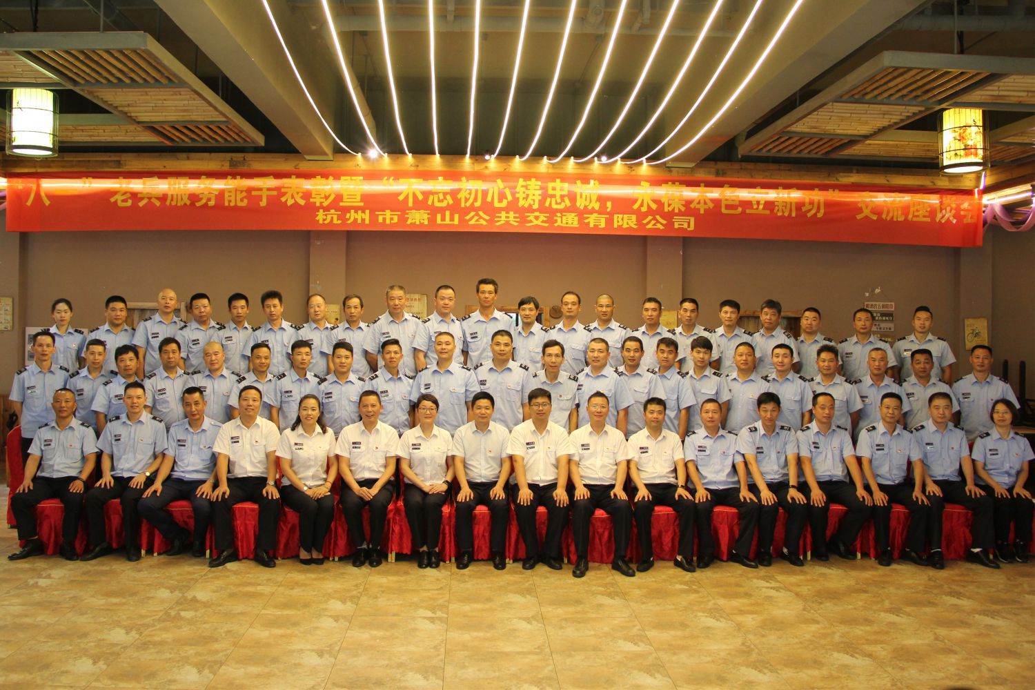 為充分發揮退伍老兵內在優勢和示范帶動作用,8月11日上午,蕭山公交隆重舉行“八一”老兵服務能手表彰暨“不忘初心鑄忠誠,永葆本色立新功”交流座談會。蕭山區退役軍人事務局黨組成員、副局長李廣勇,公司班子領導、各車隊隊長、支部書記、老兵先進個人、新媒體記者等共計70余人參加活動。