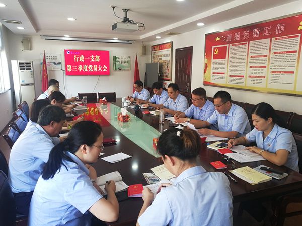 本次會議主要分四個部分進行:一是由支部書記盛剛傳達蕭長運黨【2019】14號文件《關于開展慶祝新中國成立70周年系列活動的通知》;二是由支部委員沈晶傳達蕭長運紀【2019】6號文件《轉發〈區紀委關于4起“中梗阻”典型問題通報〉的通知》;三是布置落實“不忘初心·牢記使命”主題教育學習要求;四是組織黨員、群眾進行第三季度的黨員先鋒指數考核評議工作。