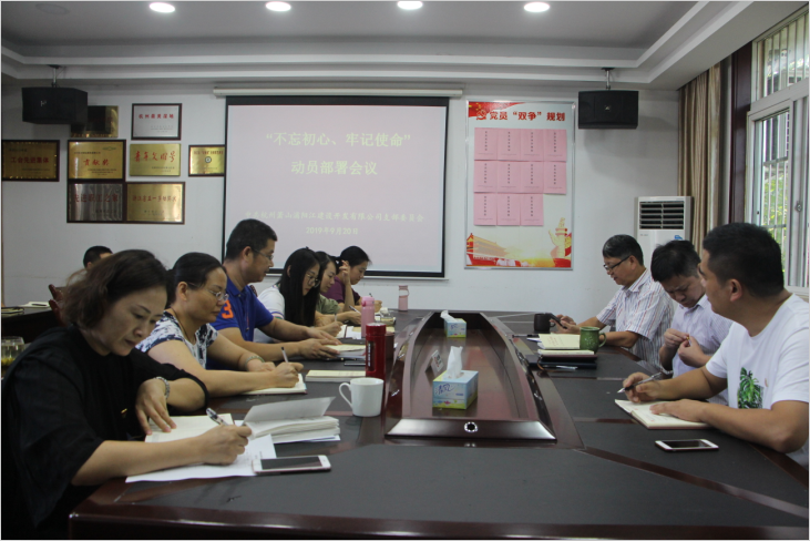 9月20日下午,浦陽江開發公司黨支部召開“不忘初心、牢記使命”主題教育動員部署會議,并開展相關學習活動,支部全體黨員、入黨積極分子、中層副職以上非黨管理人員參加。會上,公司黨支部書記王光明傳達集團黨委副書記、總經理徐寧軍在關于“不忘初心、牢記使命”主題教育工作動員大會的講話精神,并全面啟動主題教育活動,安排部署主題教育活動相關工作。隨后,參會人員集體學習《習近平關于“不忘初心、牢記使命”論述摘編》核心內容,黨員代表紛紛發言,分享個人學習感悟和心得。同時,黨支部書記王光明強調:一要把《摘編》納入主題教育學習計劃;二要認真學習,真正做到守初心、擔使命、找差距、抓落實;三要用習近平新時代中國特色社會主義思想武裝頭腦、指導實踐、推動工作。最后,大家學習觀看了“三好雙一流”中涌現的先進典型人物事跡及“我和我的祖國”主題MV。公司總經理韓國海主就圍繞此次主題教育,提出三點要求:一要加強組織,制定具體實施方案,推進主題教育具體化、精準化;二要加強學習,與公司黨建工作相結合,深入貫徹“守初心、擔使命、找差距、抓落實”的總要求;三要統籌推進,與公司當前重點工作相結合,切實把學習教育、調查研究、檢視問題、整改落實貫穿主題教育全過程,進一步激發黨員干部干事創業的精氣神。