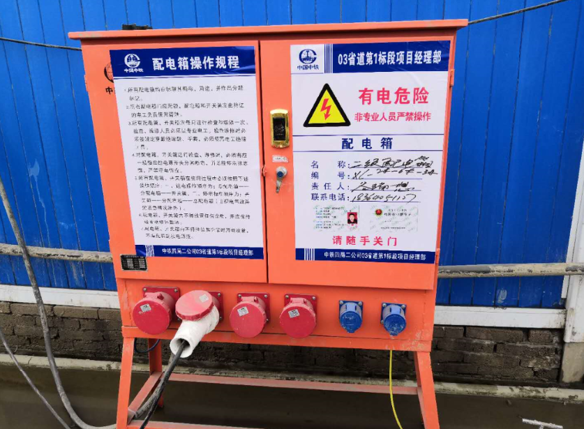 四是創技術。提高安全建設,便捷施工操作,發展技術創新。03東復線高架南延一標段采用航空配電箱,專職電工提前接好電纜接頭,作業人員取電直接插入,方便且效率高。鋼桿支架采用盤口支架和定型臨邊安全防護網,功能齊應用廣,安全性好,使用壽命長,搭拆更簡便。