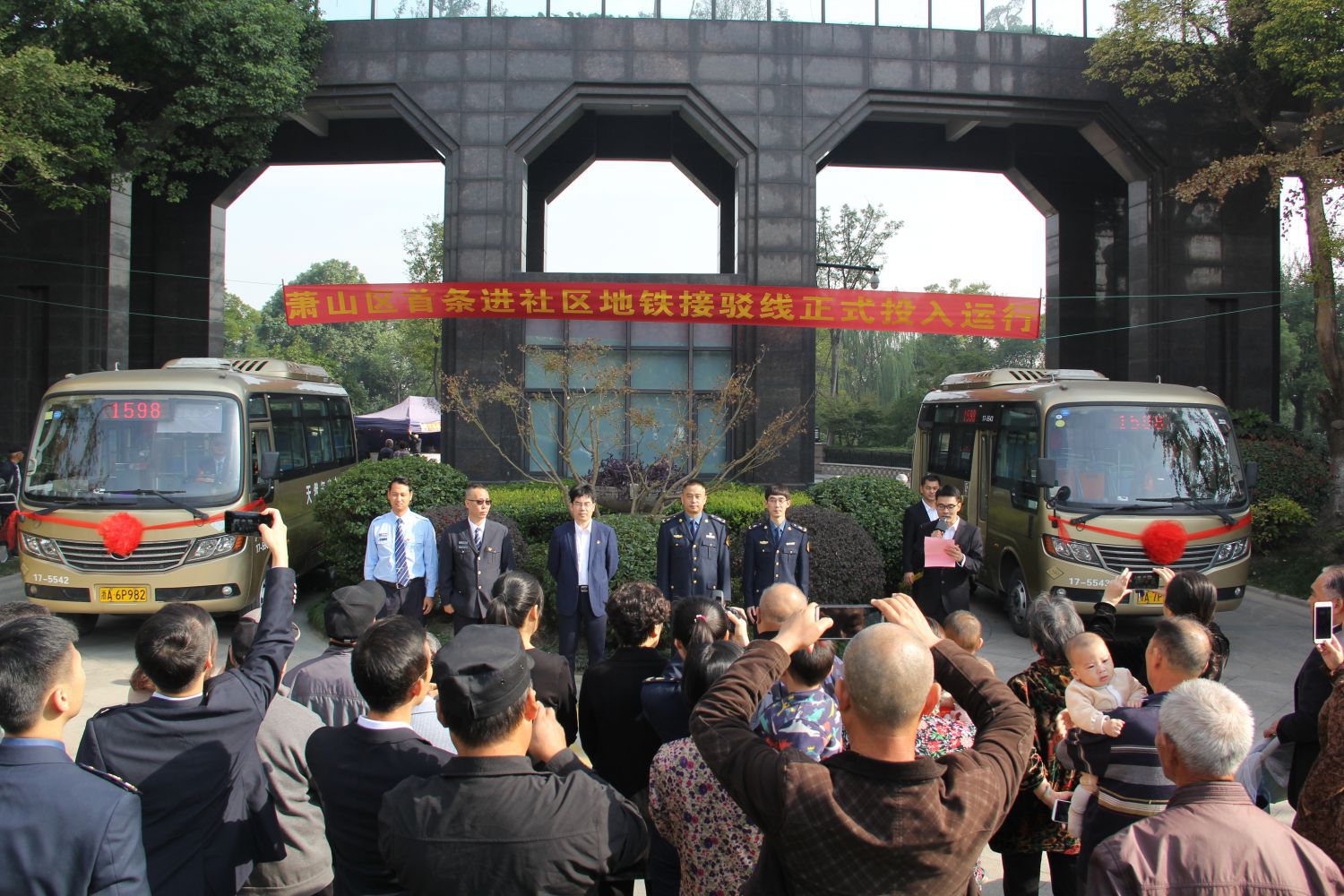 出門就能坐公交,直接送到地鐵站,“零空間換乘”讓市民出行更方便。11月1日上午,蕭山區(qū)首條進(jìn)社區(qū)地鐵接駁公交線啟動(dòng)儀式在寧圍街道水博社區(qū)隆重舉行,蕭山區(qū)寧圍街道黨工委委員、組織部長(zhǎng)肖紅安,街道辦事處副主任潘丹陽、區(qū)道路運(yùn)輸管理處黨總支書記葉凱、區(qū)寧圍街道辦事處社區(qū)管理辦科長(zhǎng)張嵐科長(zhǎng)、區(qū)道路運(yùn)輸管理處辦公室主任戚波波、蕭山公交副總經(jīng)理金國(guó)華、水博社區(qū)書記姚良及公交相關(guān)人員參加儀式。水博社區(qū)公交站臺(tái),二輛嶄新的1598路公交車整裝待發(fā),標(biāo)志著蕭山區(qū)公交線路進(jìn)社區(qū)新模式正式邁入“零空間換乘”時(shí)代。