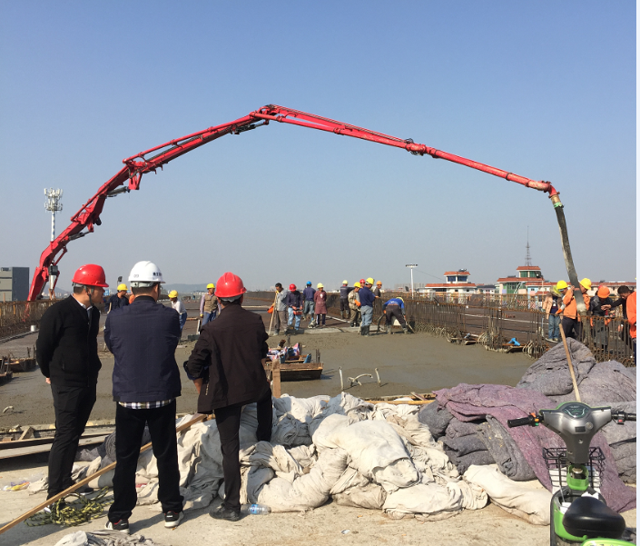 此處箱梁頂板于11月9日上午8時(shí)開(kāi)始澆筑,邀請(qǐng)了監(jiān)理辦和設(shè)計(jì)院監(jiān)督、指導(dǎo),并配備現(xiàn)場(chǎng)質(zhì)檢員、現(xiàn)場(chǎng)安全員、試驗(yàn)員、電工、收料員、支架監(jiān)控等28名工作人員,實(shí)行24小時(shí)工作制,在工作人員兩天一夜的辛苦忙碌、用掉1524方砼之后于10號(hào)下午5點(diǎn)正式結(jié)束。