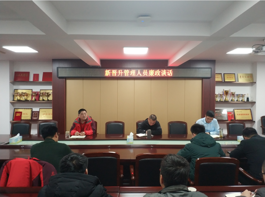 根據(jù)交通建管公司黨支部工作計(jì)劃安排,并結(jié)合公司年度廉政建設(shè)要求,確定召開(kāi)新晉升管理人員廉政談話,會(huì)議于12月24日下午在公司201會(huì)議室舉行。由公司黨支部書(shū)記楊涌、常務(wù)副總徐全民列席、副總龔鐵峰主持,共參會(huì)晉升管理人員14名。