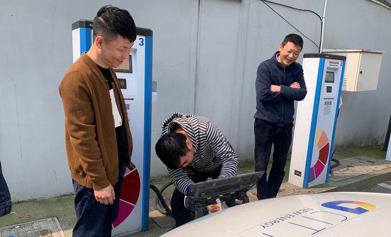 4月12日上午,新能源汽車公司充電樁業務上線試運營,集團黨委委員、副總經理、公司董事長韓朋朋,視察充電樁試運營第一天的使用情況,新能源汽車公司相關工作人員陪同。