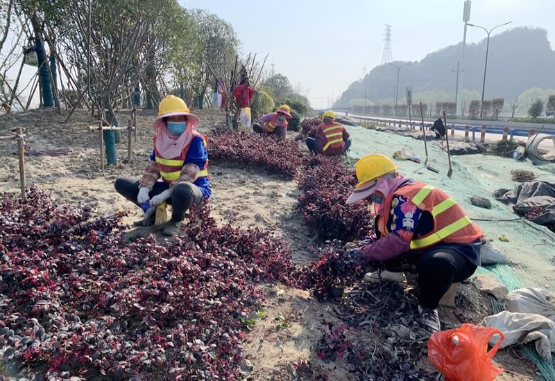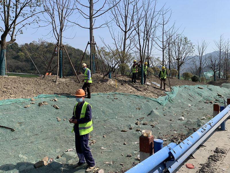 措施主要有:一是加強作業面灑掃。施工主路面的日常運輸作業,定時安排灑水車灑水作業,施工道路路面開挖過程中,在開挖預埋電力信號管采用切割機切割、風鎬鉆孔的同時,人工灑水保證濕法作業,對于開挖出來的臨時堆放建筑垃圾,全部及時外運處置。二是減少切割。對于道路平側石的安裝施工過程,采用預制件裝配式安裝,有效避免了因現場切割加工石材而增加的大氣污染。三是裸土覆綠覆布。對于路面兩側的裸土未綠化區域與短時未施工的待拓寬路段,施工單位全部采用防塵土工布覆蓋并加固,定時安排人員對破損的綠網進行及時更換。