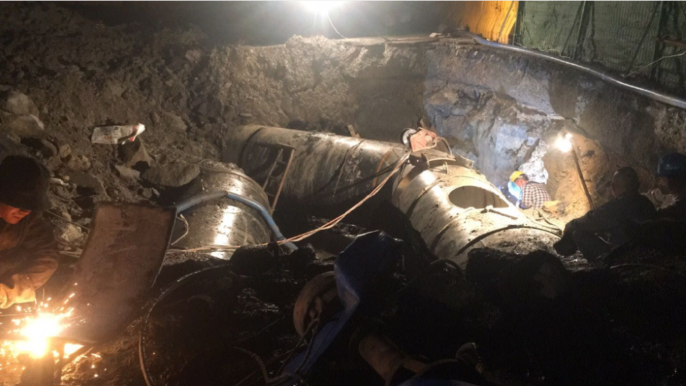 2020年5月7日,蕭山環境集團和濱江水務公司對時代大道改建工程DN1400原水管濱江交界處和孔家埠處兩段進行遷改割接。由于地下管線情況復雜,焊接作業量大且施工作業面小,給現場施工帶來諸多不便。為確保在規定時間內完成任務,現場作業人員在克服時間緊、任務重,施工難度大等問題的同時,集中力量統籌安排,于5月17日凌晨三點完成割接。DN1400原水管首次割接工作的完成不僅為后續的管線遷改奠定了良好的基礎,同時確保了該工程后續工作的順利推進。