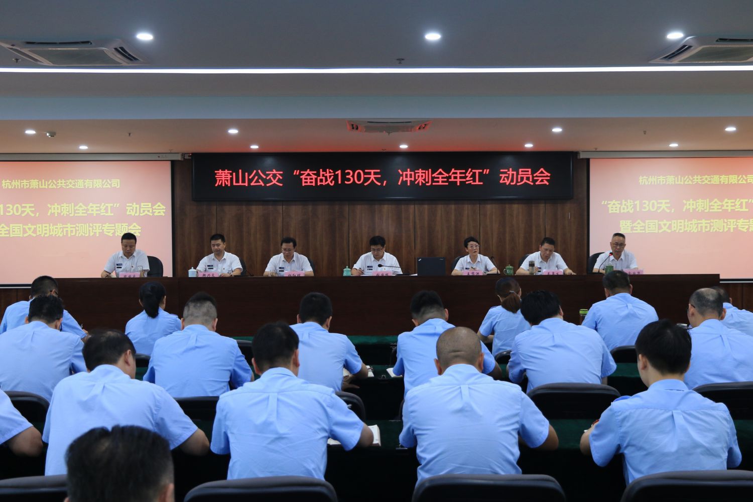 為切實(shí)做好迎檢工作,近日,公交公司在506會議室召開“奮戰(zhàn)130天,沖刺全年紅”動員會暨全國文明城市測評專題會議,傳達(dá)集團(tuán)精神,部署公司下階段重點(diǎn)工作。公司班子成員、全體中層參加會議,會議由張國棟總經(jīng)理主持。會上,公司各位分管領(lǐng)導(dǎo)圍繞進(jìn)一步促進(jìn)全年目標(biāo)任務(wù)的完成以及全國文明城市測評迎檢工作進(jìn)行部署。