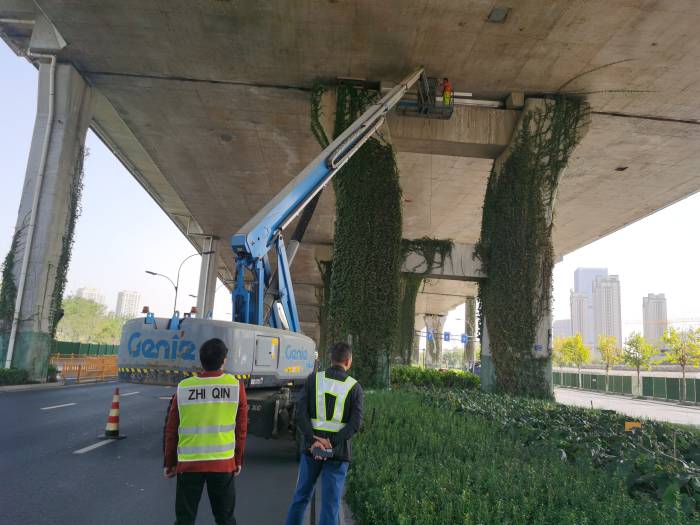 本次施工作業(yè)全程避開交通高峰時(shí)段,降低對過往車輛的影響。作業(yè)人員嚴(yán)格遵循“預(yù)防為主、防治結(jié)合”的原則,采用登高車對橋梁的伸縮縫集水槽進(jìn)行施工檢查,確保橋梁正常運(yùn)營狀態(tài)。卜總在此次檢查中提出兩點(diǎn)要求:一是要現(xiàn)場施工方必須做好保險(xiǎn)帶、安全帽,切實(shí)做好施工現(xiàn)場安全管理工作;二是要做到相互理解、相互支持、相互配合,共同創(chuàng)建優(yōu)質(zhì)工程。