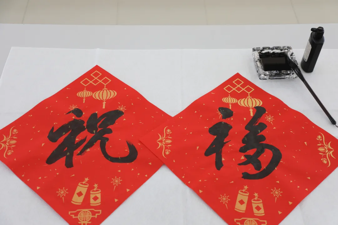 集團黨委書記祝關翔在“福”字前書寫“祝”字——寓意蕭山交投對所有建設者家人的祝福。