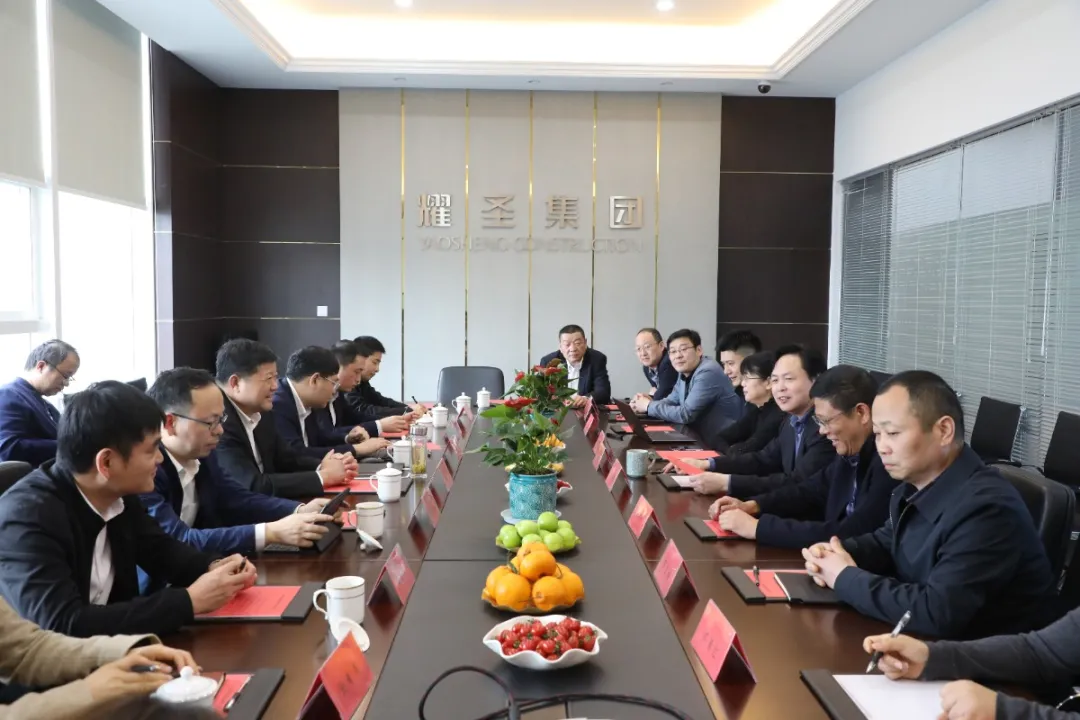 3月31日下午,集團班子領導祝關翔、徐寧軍、孔樂、韓朋朋帶領相關職能部室、單位負責人前往浙江耀圣集團柳橋、墩里吳房建項目參觀考察,并在公司總部進行座談交流。