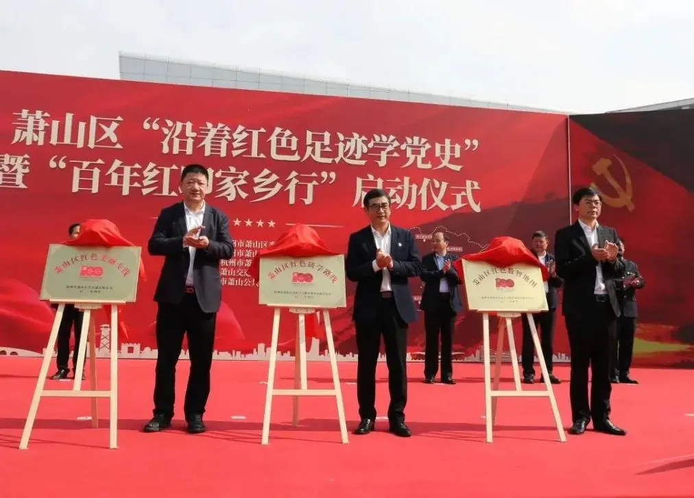 蕭山區委常委、組織部部長陸志敏,區委常委、宣傳部部長周勝華,副區長方軍分別為紅色研學路線、紅色數智地圖、紅色美麗專線揭牌。