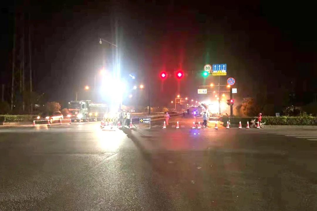 為加快工程建設(shè)步伐,最大程度地減緩交通壓力,確保工程施工安全,公司嚴(yán)格按交通組織方案,應(yīng)地制宜,分時施治,對建設(shè)四路改造路段采用避開早晚高峰,從上午10:00至下午17:00時間段施工。風(fēng)情大道改造路段則采用深夜施工,從晚上21:00-凌晨5:00時間段通宵施工,對路面進(jìn)行瀝青鋪筑。