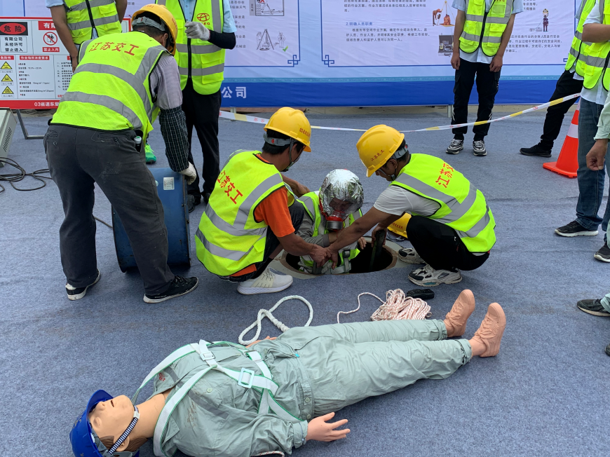 為貫徹落實“安全第一,預防為主,綜合治理”的工作方針,根據《中華人民共和國安全生產法》、《浙江省安全生產監督管理條例》、《03省道東復線高架南延工程第2標段事故應急救援預案》文件要求,交通建管公司于2021年6月28日上午在03省道東復線高架南延工程項目部組織了有限空間作業應急演練。