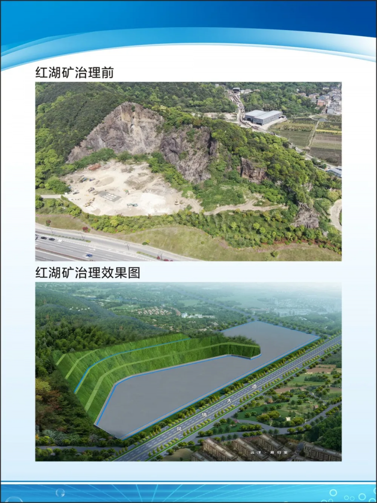 實地查看紅湖礦山山體生態(tài)修復及景觀提升工程