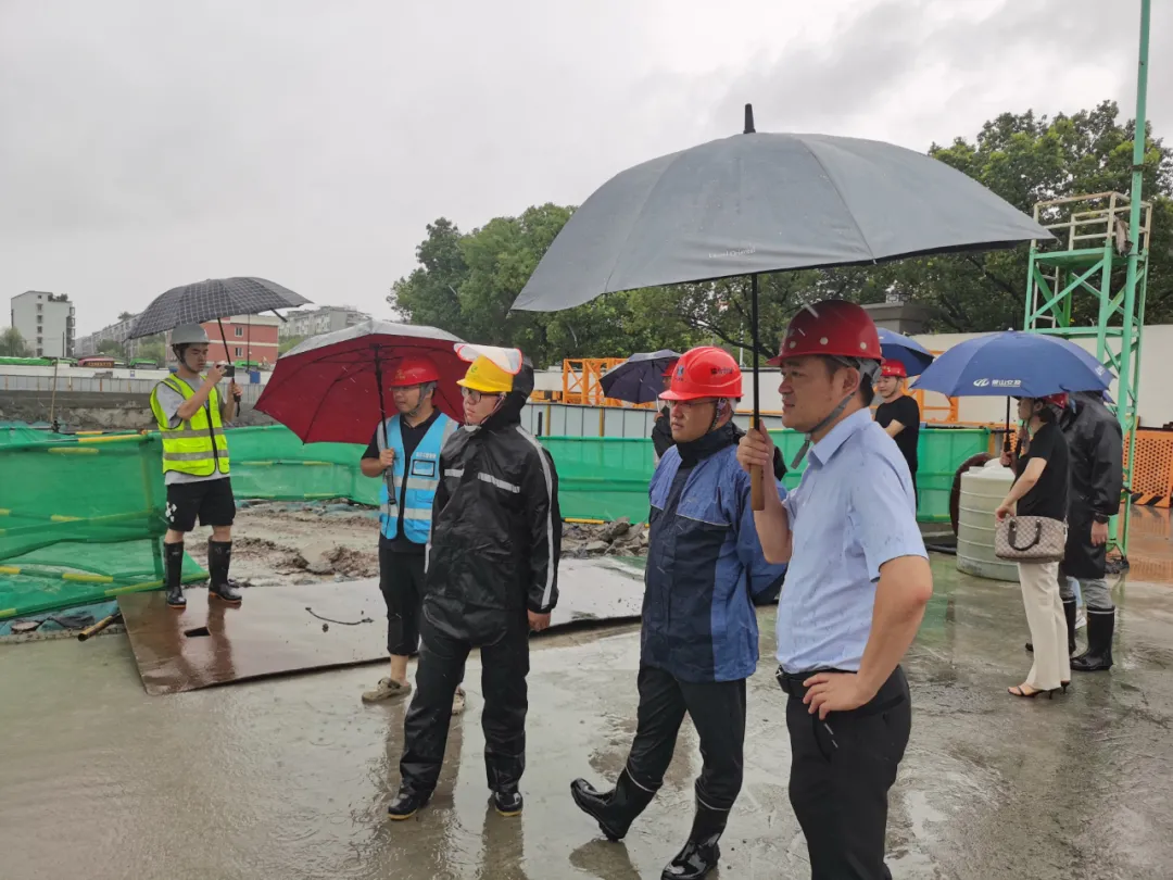 第一組:集團黨委書記、董事長夏柏林帶隊檢查招商大樓項目、北干科創園項目、時代大道改建工程等防汛抗臺工作。