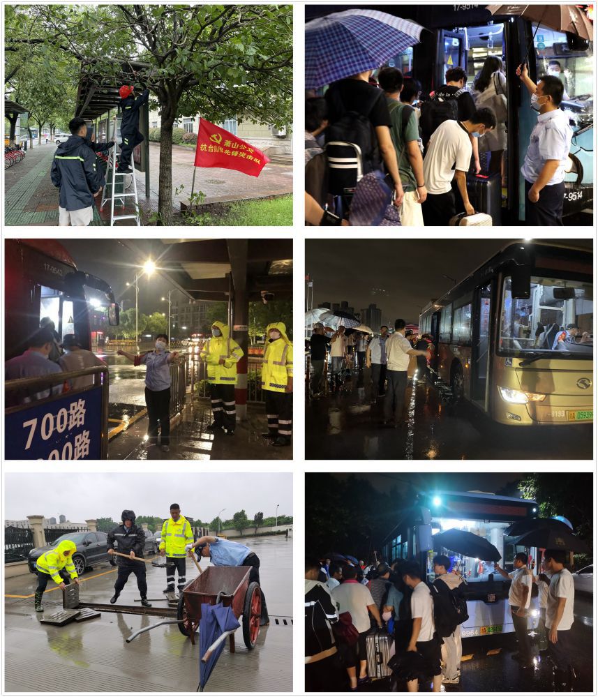 責任扛起來,黨旗飄起來。面對“煙花”的持續發威,公司黨委充分發揮戰斗堡壘作用,引領干部職工迎難而上、全力奮戰;廣大黨員干部挺身而出、率先垂范,紛紛寫下請戰書加入先鋒突擊隊。抗臺防汛期間,公司全體班子、50余名中層干部、60余名管理人員以及2000余名一線職工甘愿放棄休息,各車隊冒著瓢潑大雨下線路、進站房,全面強化現場督導宣教,加強運營線路勘察預警;各職能部室沖在第一線、戰斗最前沿,分赴各重點場站及時疏導排水,消除內澇隱患,并持續跟進道路通行情況,確保隨時掌握汛情;廣大黨團志愿者積極響應黨組織號召,冒雨參加道路巡查、交通引導、隱患排查、排澇除險等志愿服務,共同凝聚起抗臺防汛的強大力量。