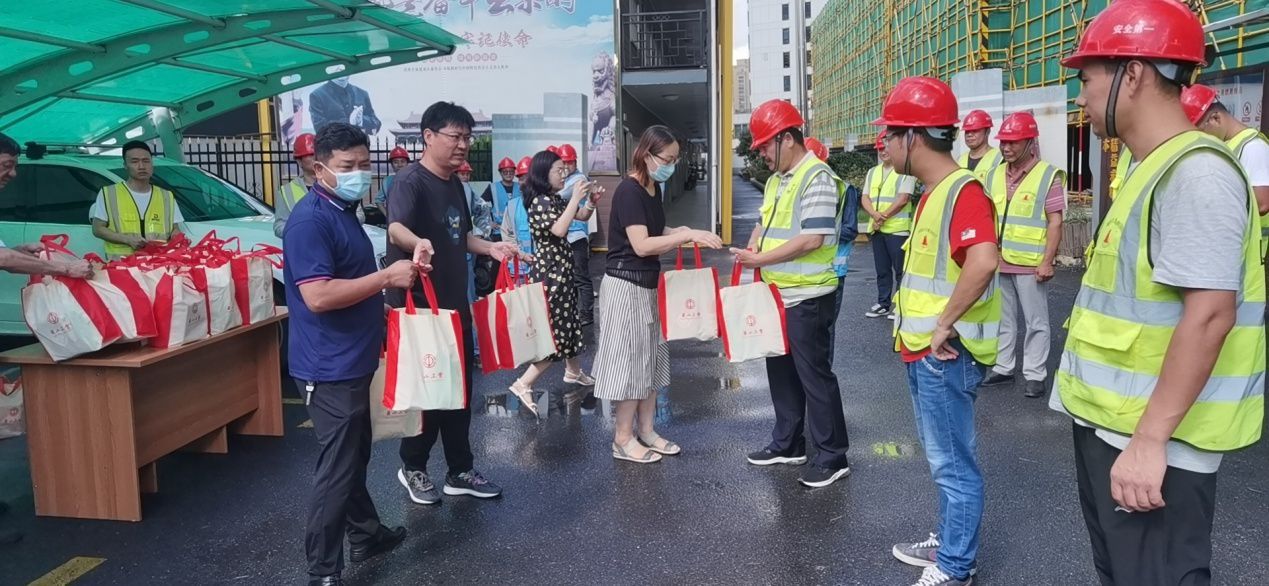 工作人員將一份份防暑慰問品交到工地一線人員手中,對他們不畏烈日高溫,堅(jiān)守崗位的工作態(tài)度和精神風(fēng)貌表示贊賞,并仔細(xì)詢問了他們的工作情況和身體狀況,叮囑他們要做到勞逸結(jié)合,順利健康度過高溫時(shí)節(jié)。