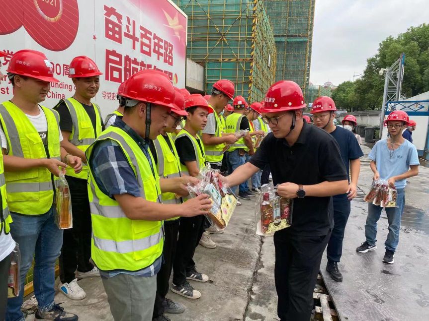 慰問組來到高田永久安置房項目、南門安置房項目、北干集中安置房一期項目、巡特警二期項目、科創(chuàng)園項目、各類資產(chǎn)項目等地,將“清涼關懷”送到工人手中,詳細詢問了他們的工作和生活情況,對大家不畏酷暑堅守工作崗位的精神表示衷心感謝,并叮囑他們注意勞逸結(jié)合,安全生產(chǎn),繼續(xù)發(fā)揚工人階級拼搏奉獻的精神,以更加飽滿的熱情投身企業(yè),全力推進工程建設,加強工程質(zhì)量和安全意識,確保各階段目標任務順利完成。