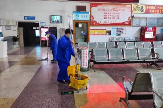 候車大廳每日衛(wèi)生清潔、噴灑消毒水