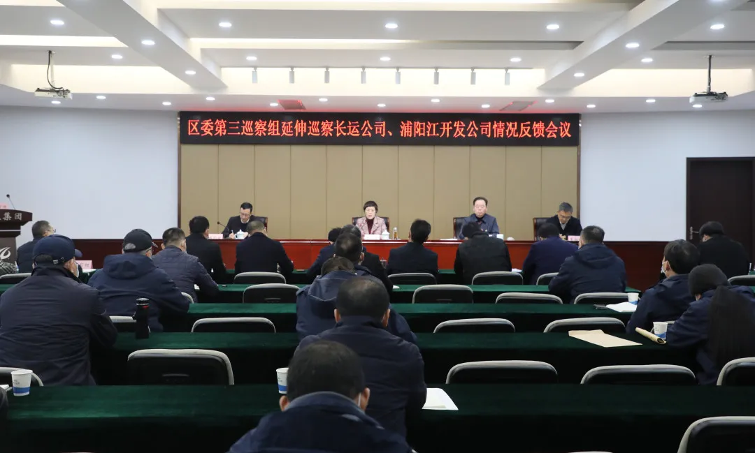2022年1月13日,區委第三巡察組延伸巡察長運公司、浦陽江開發公司情況反饋會議召開。區委常委、區紀委書記、區委巡察工作領導小組組長周萍英出席會議并講話。
