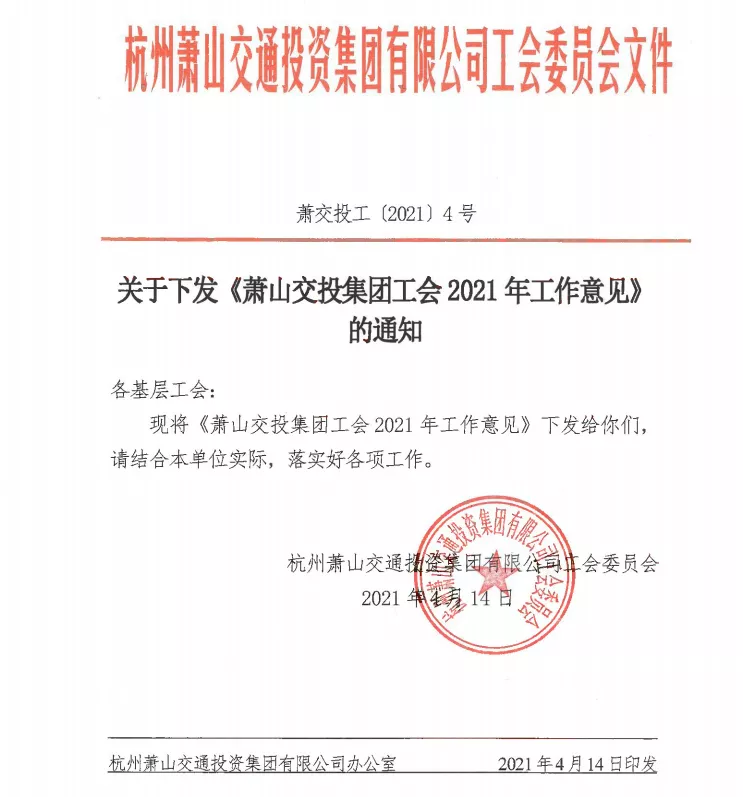 蕭山交投集團(tuán)工會(huì)在集團(tuán)黨委和區(qū)總工會(huì)的領(lǐng)導(dǎo)下,以習(xí)近平新時(shí)代中國(guó)特色社會(huì)主義思想為指導(dǎo),緊緊圍繞年初工作目標(biāo),以服務(wù)中心、服務(wù)職工為宗旨,扎實(shí)開展各項(xiàng)工作,助力集團(tuán)轉(zhuǎn)型發(fā)展,跨越發(fā)展。