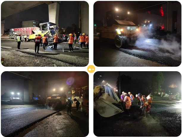 走進(jìn)工地,映入眼簾的是火熱的施工場(chǎng)面:滿載瀝青混凝土的多輛重型貨車往來(lái)穿梭,工人們?cè)趽浔堑臒崂酥惺炀毜夭倏卮笮蜑r青鋪筑機(jī),將一車車瀝青均勻地鋪設(shè)到指定地點(diǎn),一臺(tái)臺(tái)碾壓機(jī)梯次推進(jìn),將瀝青混凝土壓實(shí),一條平整嶄新的瀝青路面逐漸成型。