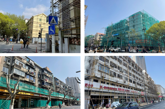 當(dāng)前總體進(jìn)度10%,完成腳手架搭設(shè)50%,外墻面部分整治拆除15%。
