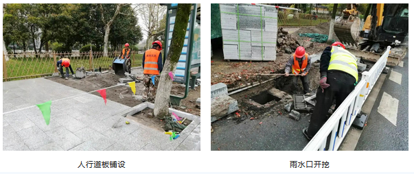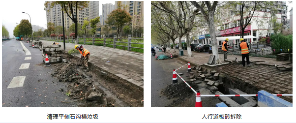 道源路:平側石拆除3035米,占總量的43%;安砌平側石2200米,占總量的31%;人行道拆除11490平方米,占總量的60%;人行道鋪設4000平方米,占總量的21%。