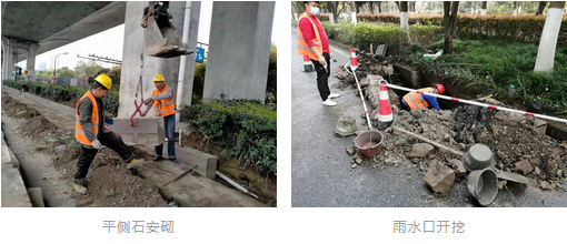 道源路:平側石拆除3035米,占總量的43%;平側石安砌2200米,占總量的31%;人行道拆除11490平方米,占總量的60%;人行道鋪設4000平方米,占總量的21%;雨水口新增43座,占總量的33%。