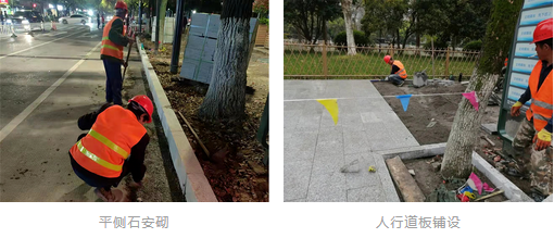 金城路:人行道已全部拆除;人行道鋪設845平方米,占總量的7.4%;平側石拆除3030米,占總量的72%;安砌平側石4610米,占總量的48%;雨水口新增已全部完成。