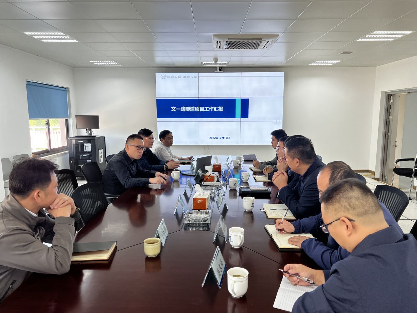 公司一行人員首先參觀了文一路隧道中央控制室,聽(tīng)取了隧道監(jiān)控管理與指揮調(diào)度工作運(yùn)行機(jī)制情況講解。隨后召開(kāi)了座談交流會(huì),隧道管理單位詳細(xì)介紹了項(xiàng)目總體概況、隧道維養(yǎng)措施經(jīng)驗(yàn)與隧道全生命管養(yǎng)平臺(tái)開(kāi)發(fā)應(yīng)用情況。公司領(lǐng)導(dǎo)與各部門負(fù)責(zé)人認(rèn)真詢問(wèn)了各類知識(shí)疑惑與養(yǎng)護(hù)實(shí)際工作問(wèn)題,對(duì)方均給予了全面詳細(xì)的解答。