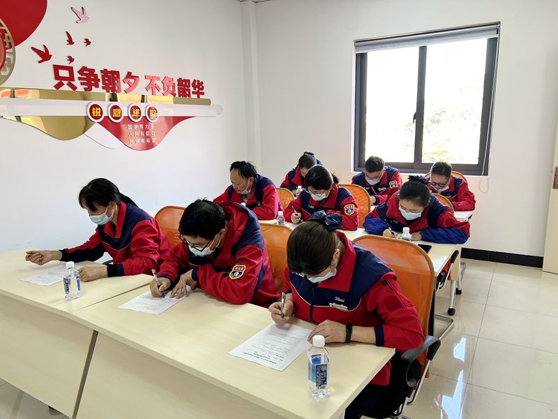 本次測試采用閉卷答題形式進行,考試題型由單項選擇題、多項選擇題、判斷題和簡答題四種題型組成,內容涵蓋危化品安全知識、消防知識、加油站“十大禁令”、保命“二十條”、應急救援知識等。