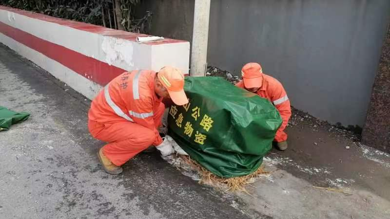 迅速出擊,合理處置。21日夜晚起,公司搶險人員化身風(fēng)雪中的守護(hù)人,在重點路段、橋梁、高架、下穿等易結(jié)冰易路段鋪設(shè)草包、及時預(yù)撒融雪劑,進(jìn)行各項預(yù)防工作。
