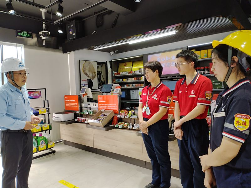 現場,檢查組一行對站點油罐區、加油區、卸油口等部位安全設施設備、員工安全教育培訓情況、應急預案演練處置、應急物資儲備等情況進行了檢查。