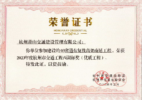 近日,從杭州市傳來喜訊,交通建管公司參與建設(shè)的03省道東復(fù)線高架南延工程榮獲2023年度杭州市交通工程西湖杯獎(jiǎng)(優(yōu)質(zhì)工程)。這一獎(jiǎng)項(xiàng)不僅是對工程質(zhì)量的高度認(rèn)可,也是對我單位工程技術(shù)實(shí)力和專業(yè)能力的充分肯定。