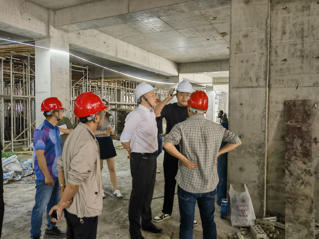 徐煒一行實地查看了莫家港地塊重點施工點位,詳細了解了工程施工進展以及安全措施的落實情況,現場聽取了項目負責人關于項目總體計劃、施工進展和下階段重點工作安排。立足識別大風險,消除大隱患,杜絕大事故,堅持抓大與抓小并重、風險辨識和隱患治理雙重預防,抓好隱患排查,提升“防患意識”。
