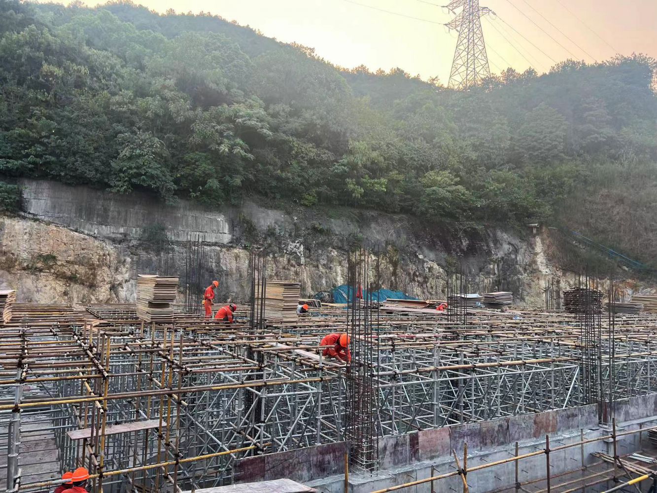 一、時代大道南延(繞城至中環(huán)段)工程管理用房。位于蕭山區(qū)義橋鎮(zhèn),項(xiàng)目總投資為3500萬元。總建筑占地面積為1065平方米(其中主樓996平方米,變電所69平方米);總建筑面積為6897平方米(其中主樓5841平方米,半地下室987平方米,變電所69平方米)。項(xiàng)目已完成項(xiàng)目部駐地建設(shè)、施工場地硬化、土方外運(yùn)12886立方、地下室的筏板基礎(chǔ)混凝土澆筑、地下室盤扣支架搭設(shè) 、地下室擋土墻混凝土澆筑。目前正在進(jìn)行地下室頂板的鋼筋和模板施工。