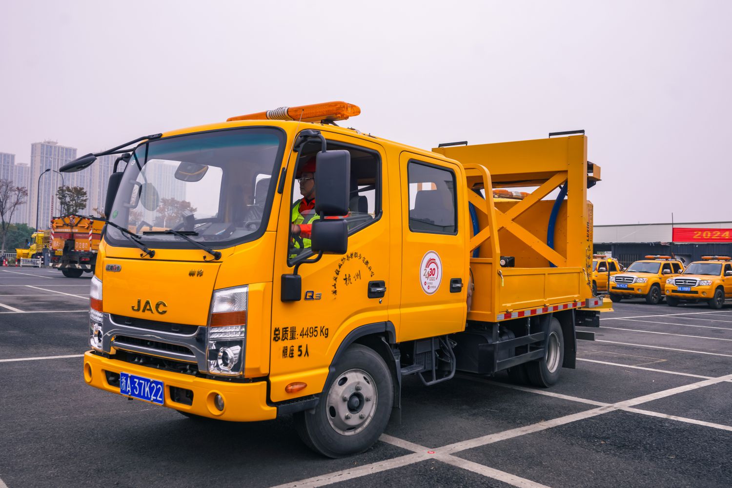 載有中型撒鹽機(jī)的養(yǎng)護(hù)作業(yè)車,載鹽量2噸,作業(yè)寬度3.5米,作業(yè)時(shí)長(zhǎng)1小時(shí),主要用于保障主干以外道路的防雪抗冰凍。