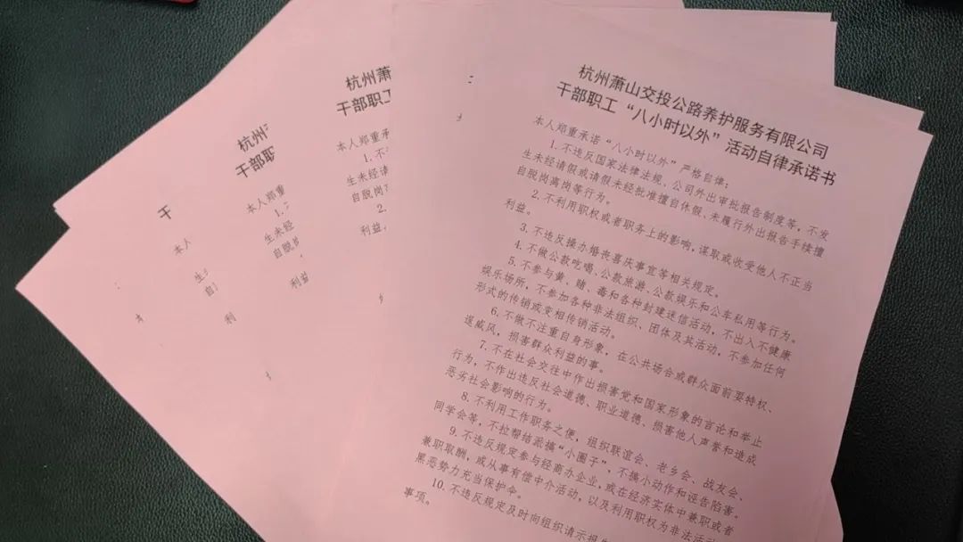 為進一步強化廉潔自律意識,活動中還簽訂了《干部職工“八小時以外”活動自律承諾書》。全體黨員鄭重簽下自己的名字,承諾在工作時間之外,也將嚴格約束自身行為,遵守社會公德、職業道德和家庭美德,杜絕違規違紀行為,樹立良好的黨員形象。這一紙承諾,不僅是對組織的交代,更是對自己和人民的莊嚴承諾。