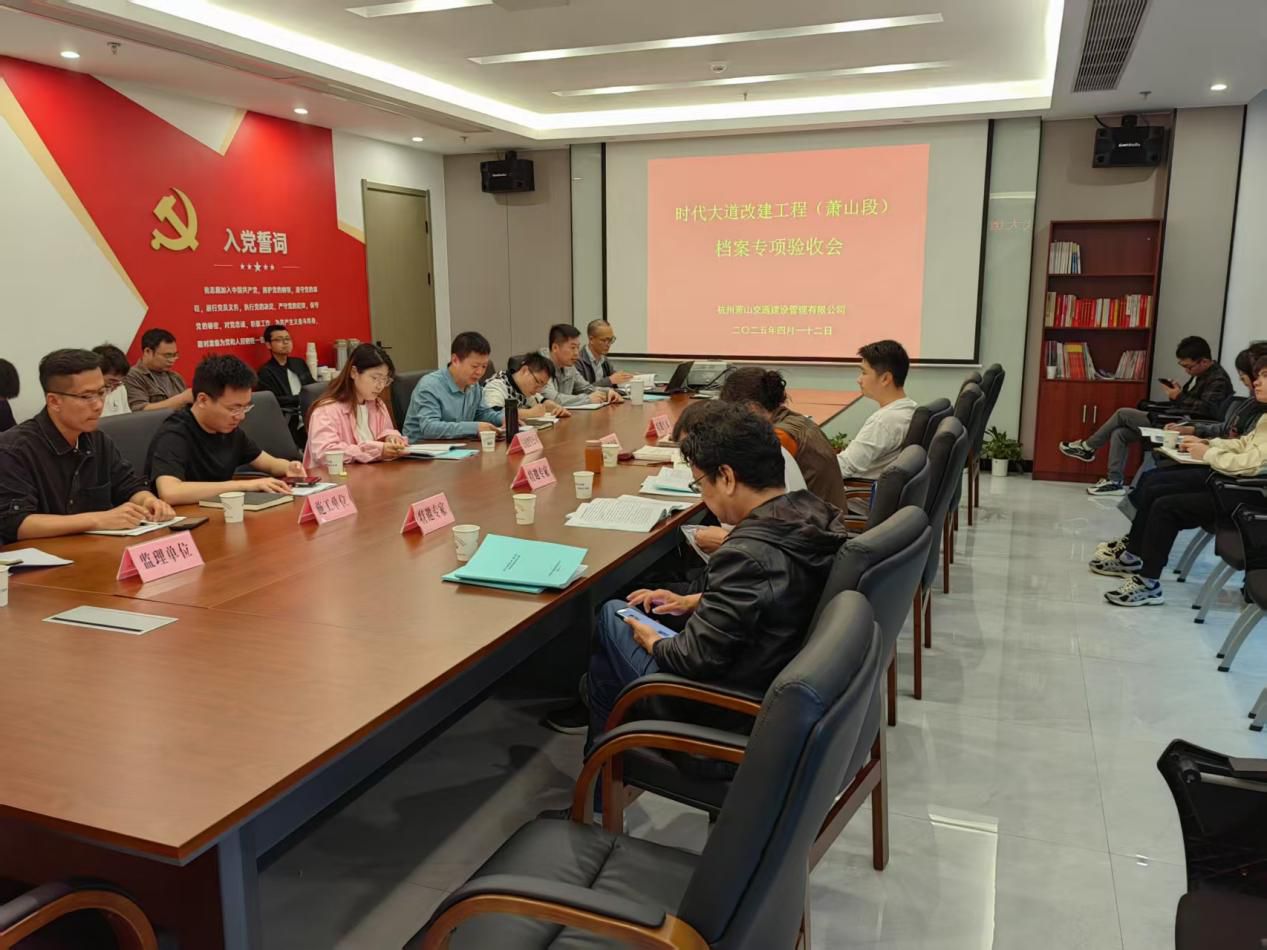近日,時代大道改建工程(蕭山段)檔案專項驗收會議在蕭山召開。會議邀請了省市區有關專家,根據浙江省重點建設項目檔案管理辦法等相關文件,對時代大道改建工程(蕭山段)檔案整理情況進行檢查,同時聽取了項目檔案驗收工作報告,抽查了部分項目案卷。
