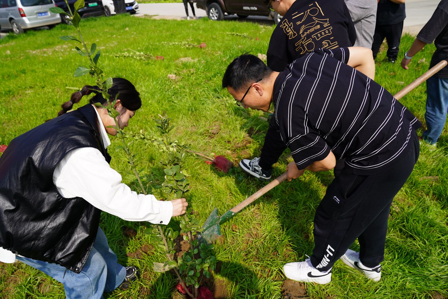活動現(xiàn)場,團員青年們?nèi)齼沙山M,攜手種下北海道黃楊等樹苗,他們分工默契——男青年揮動鐵鍬挖坑培土、搬運樹苗,女青年細心調(diào)整植株角度、覆土壓實。現(xiàn)場既有揮汗如雨的勞動場景,也有“土坑再深一點”“樹苗要扶直”的歡聲笑語,青年們額頭沁出汗珠,卻始終干勁十足,展現(xiàn)著路橋青年特有的實干風(fēng)采。