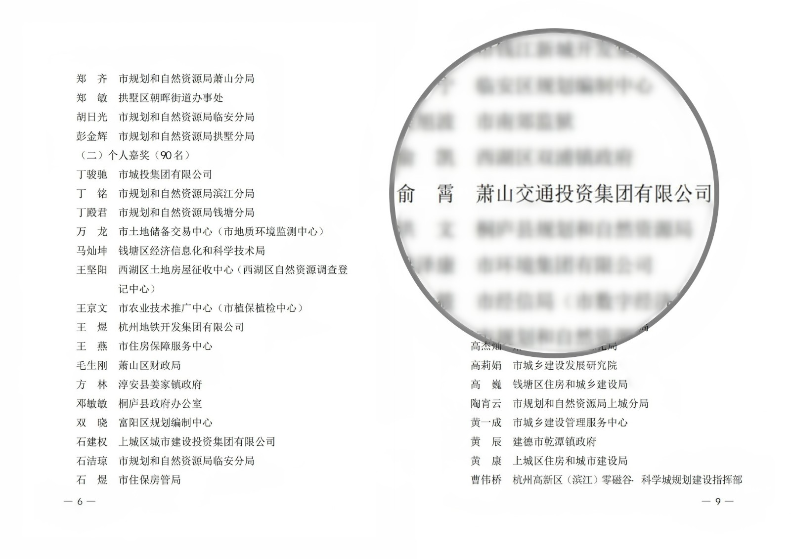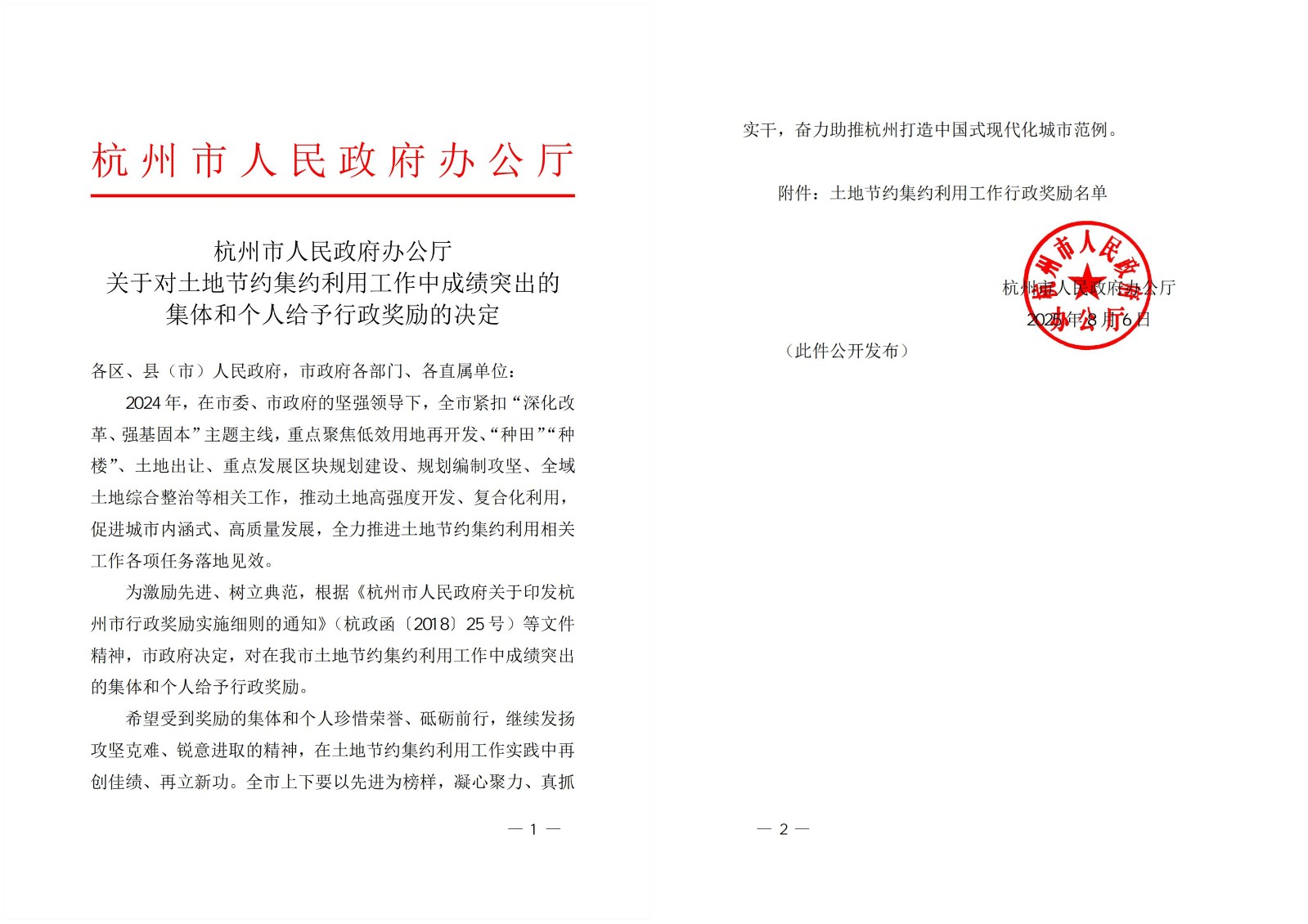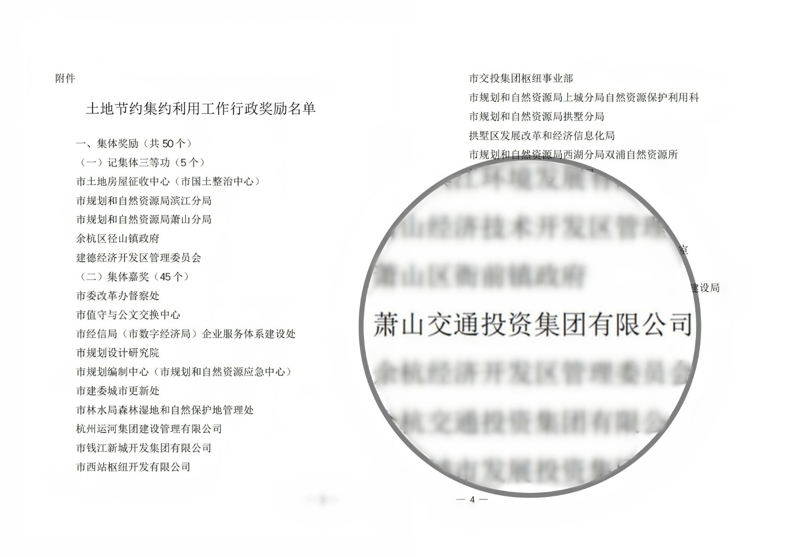 2025年8月 蕭山交投集團土地節約集約利用工作獲市級榮譽