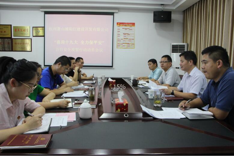 為響應(yīng)集團(tuán)“喜迎十九大 全力保平安”動(dòng)員大會(huì)精神,迎接黨的十九大順利召開,8月24日下午,浦陽江開發(fā)公司召開“喜迎十九大 全力保平安”百日攻堅(jiān)行動(dòng)動(dòng)員會(huì)議,公司全體員工參加。會(huì)上,公司總經(jīng)理韓國海傳達(dá)了集團(tuán)“喜迎十九大 全力保平安”動(dòng)員會(huì)議祝董講話精神,同時(shí)結(jié)合公司實(shí)際工作提出了三點(diǎn)要求,一要思想認(rèn)識(shí)再提高,要求員工清醒認(rèn)識(shí)迎接十九大、大學(xué)生運(yùn)動(dòng)會(huì)及文明城市復(fù)評(píng)迎檢工作重要意義,加強(qiáng)對(duì)自身要求;二要工作措施再落實(shí),從工程建設(shè)和行政管理兩個(gè)方面對(duì)公司開展的具體工作提出了詳細(xì)的要求;三要安全責(zé)任再細(xì)化,安全責(zé)任重于泰山,要求員工加強(qiáng)應(yīng)對(duì),杜絕安全生產(chǎn)事故的發(fā)生,保證工作平穩(wěn)順暢開展。