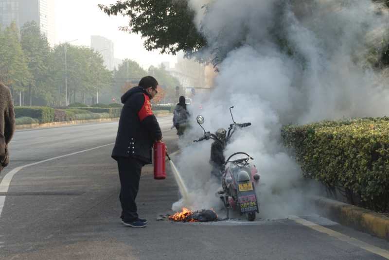 12月6 日上午8時31分,公交公司四車隊269路司機韓華軍在駕駛(編號17-7719)車輛經(jīng)過濱安路與江虹路交叉口時,發(fā)現(xiàn)路邊有一輛電動自行車起火,眼看火勢越來越大,韓師傅趕緊靠邊停好車,跟車內(nèi)乘客簡短的解釋后,帶著車內(nèi)配備的滅火器跑過去滅火。依靠平時消防培訓(xùn)掌握的知識,很快就把火勢撲滅,在確認起火車輛沒有復(fù)燃跡象后,韓師傅才回到車上繼續(xù)營運。