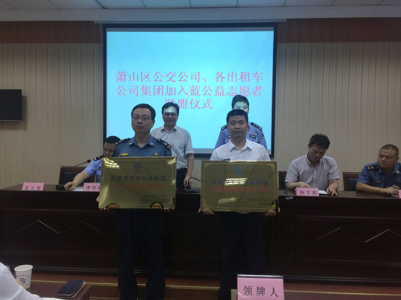 5月29日上午,蕭山公交公司副總經(jīng)理韓興良帶隊各車隊長及駕駛員代表參加了藍公益志愿者聯(lián)盟的授牌儀式。藍公益全稱為“藍聚力”平安公益志愿者聯(lián)盟,是由杭州市蕭山區(qū)熱愛社會公益事業(yè)、志愿參與平安蕭山建設(shè)、參加社會治安防范工作的個人及關(guān)心、支持城市平安建設(shè)的企事業(yè)單位、社會組織自愿組成的全區(qū)性、聯(lián)合性和非盈利性的團體組織。