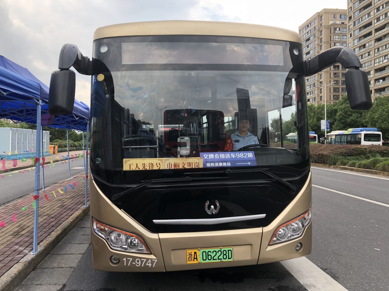 為配合展會順利開展,本著“保證重點,按線接送,安全有序,滿足需求”的原則,開通了一條免費接送專線—982路(地鐵濱康路站至白馬湖P6停車場),配車8輛。免費乘坐,由公司二車隊負責經營,根據客流變化調整線路班次。